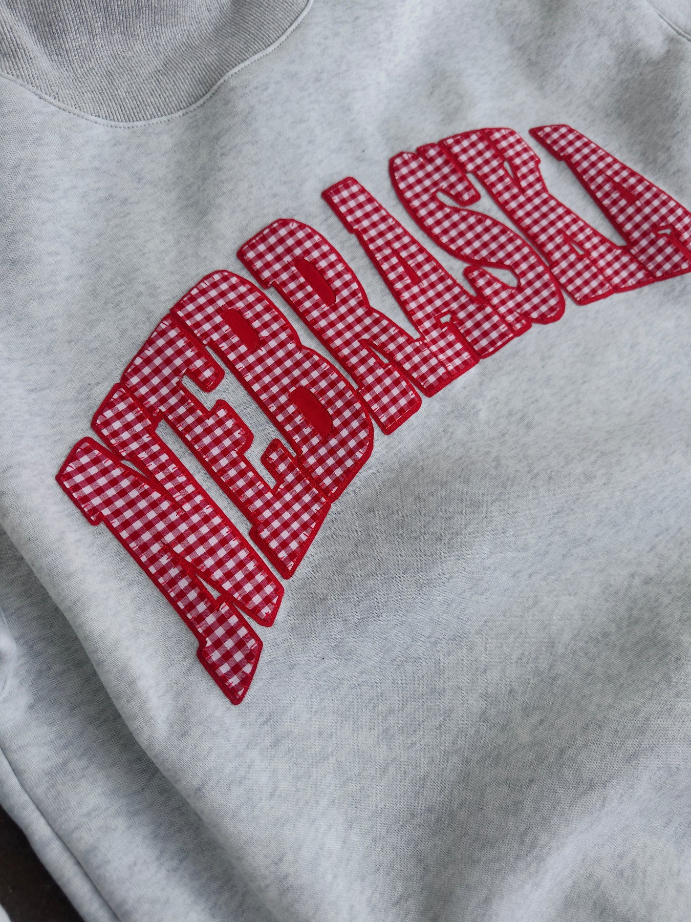 • sewn on embroidered gingham design