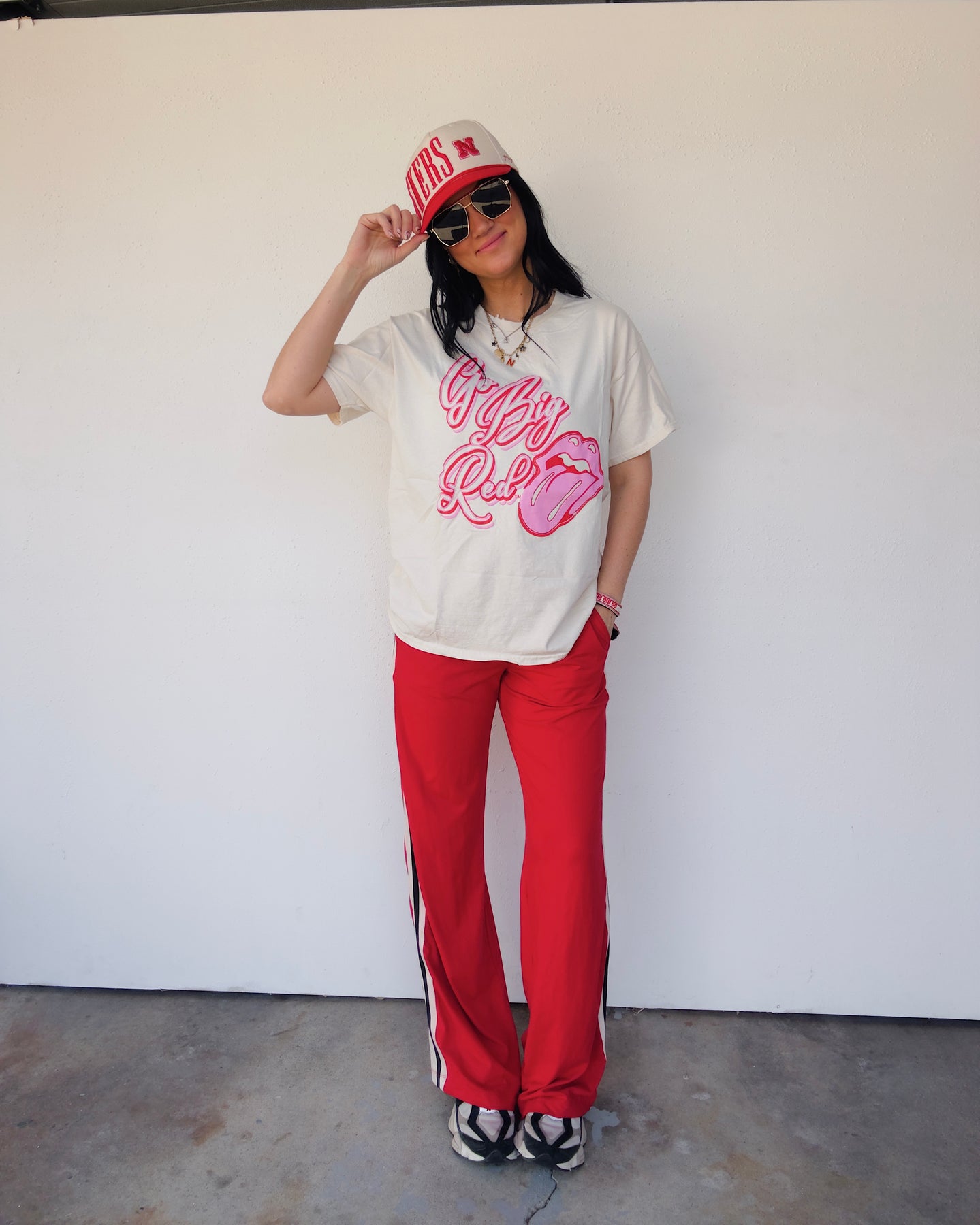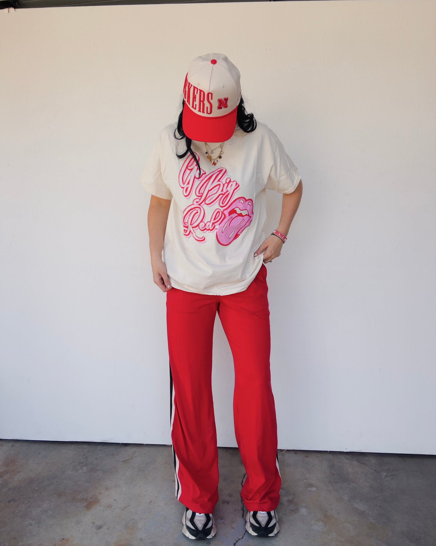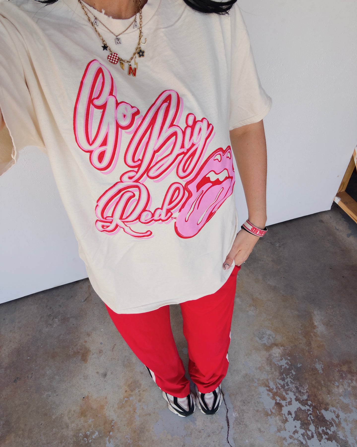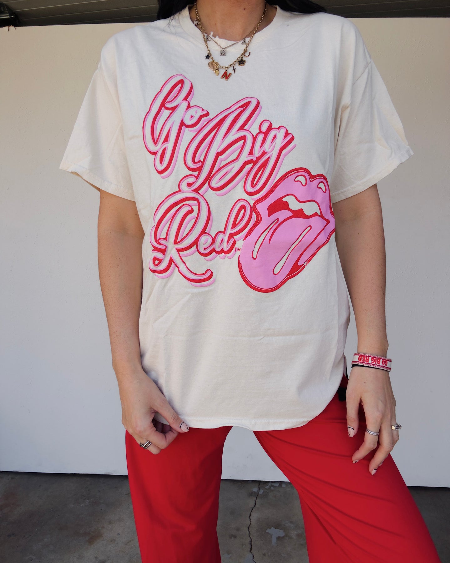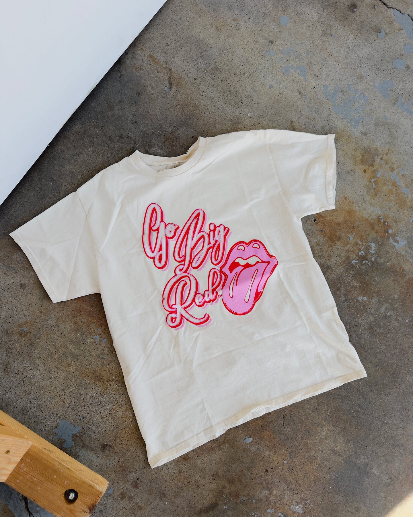 Go Big Red Distressed Puff Print Cotton Tee - Ivory