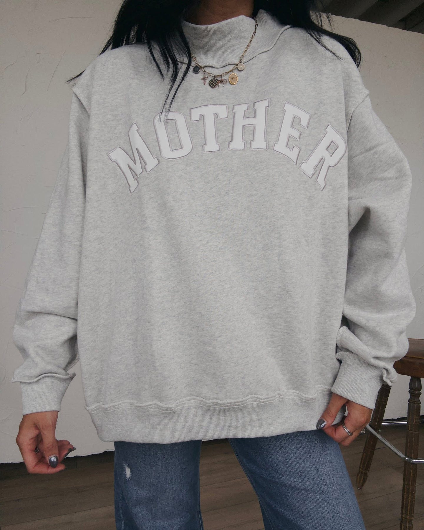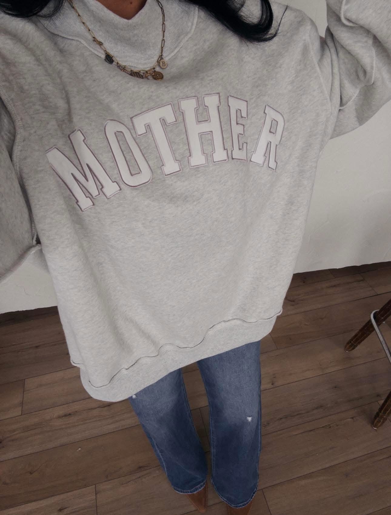 Mother Embroidered Mock Neck Sweatshirt - Ash