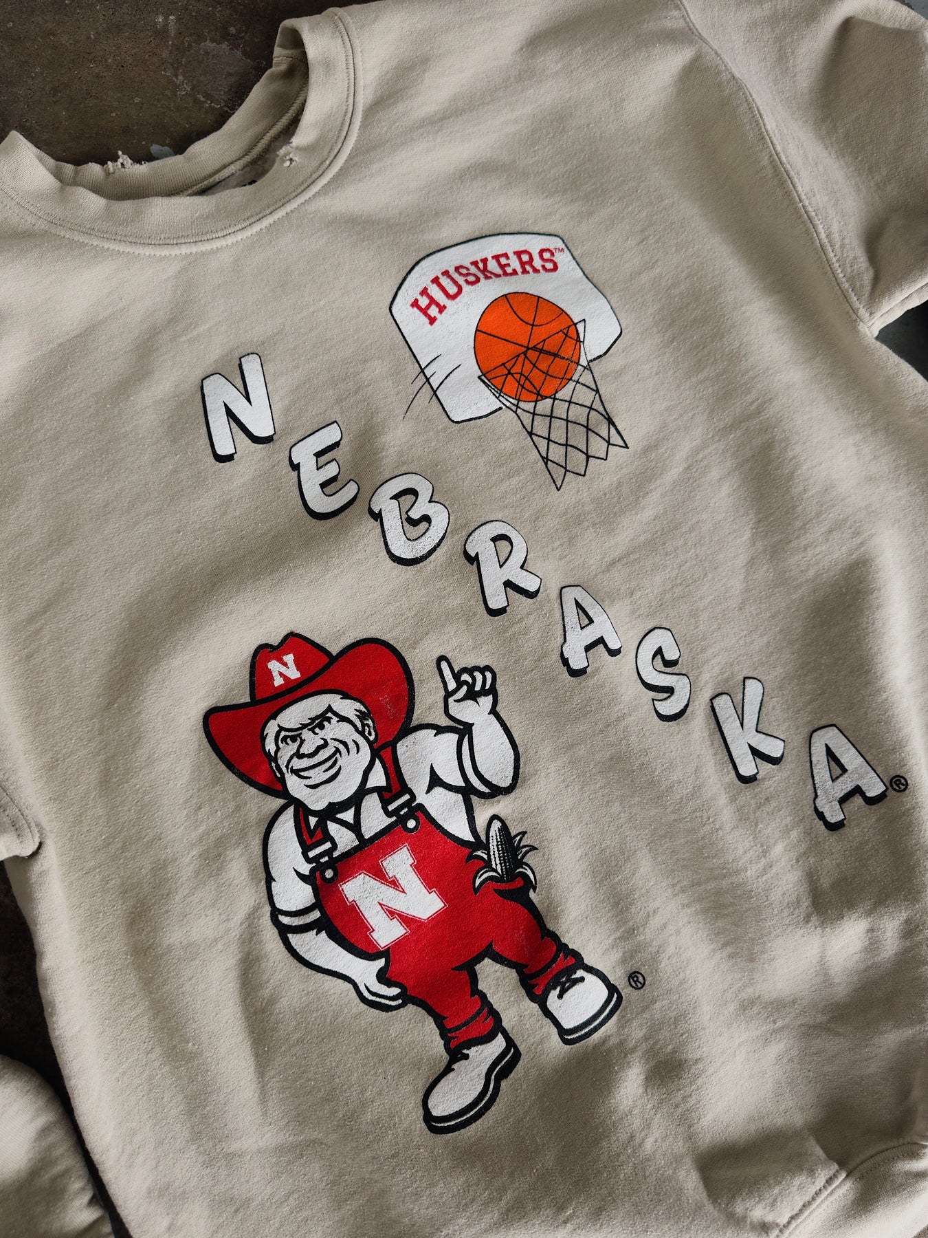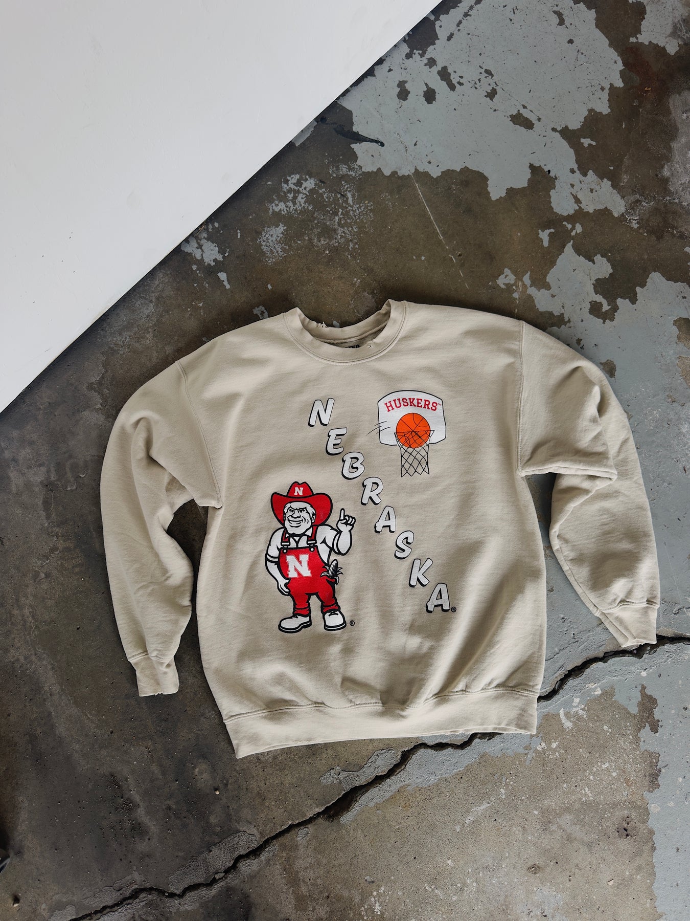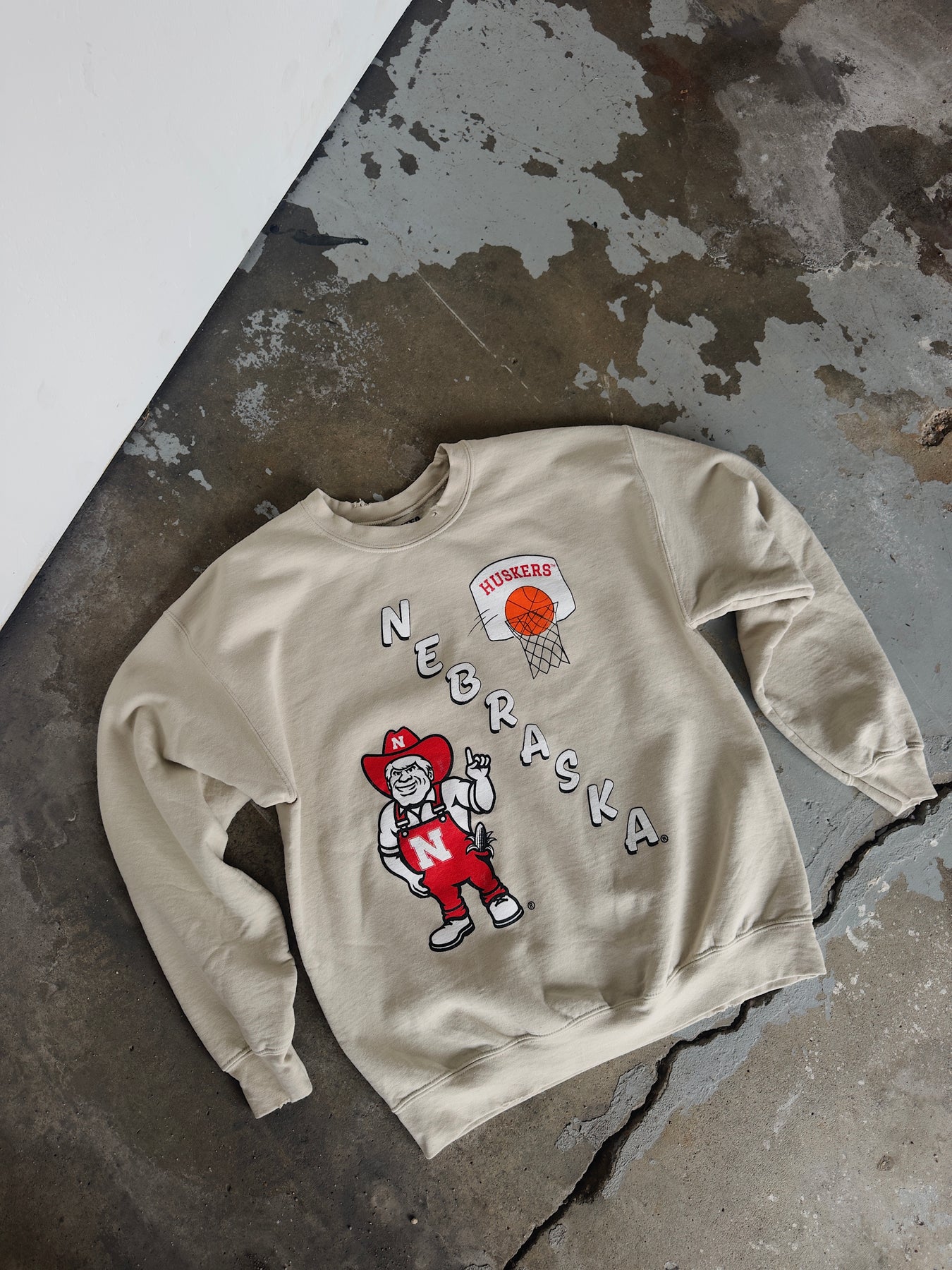 Nebraska Retro Basketball Distressed Sweatshirt - Sand