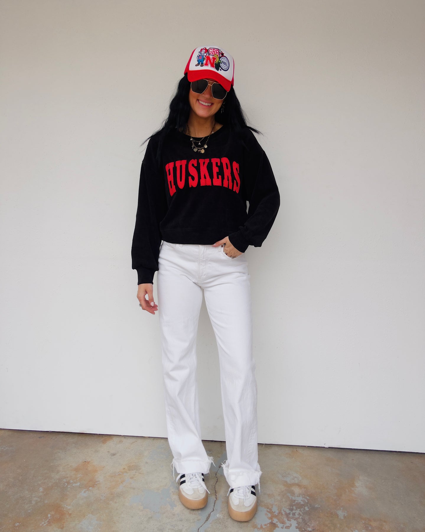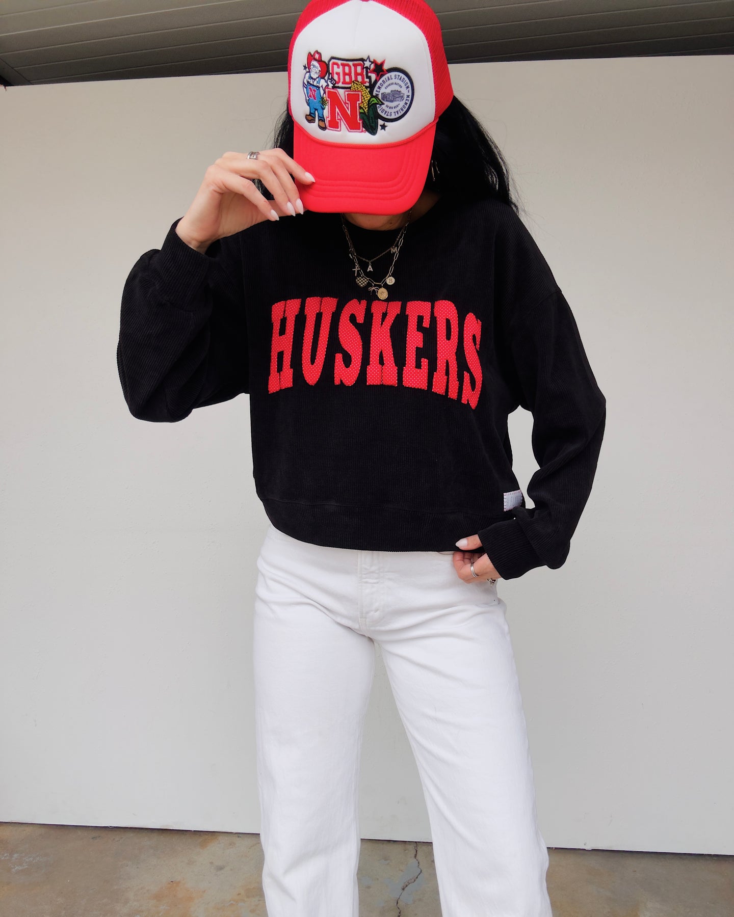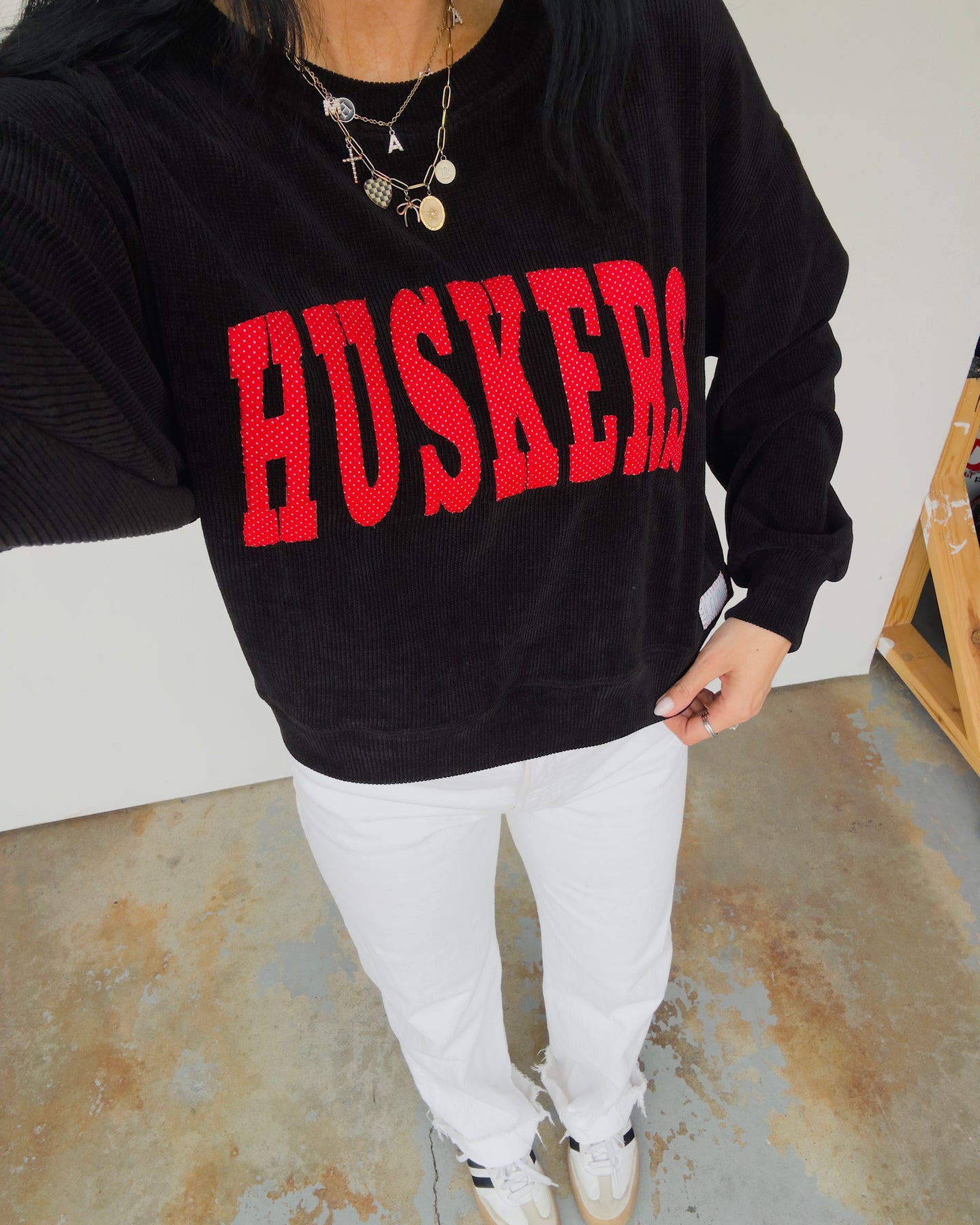 Polka Dot Huskers Corduroy Top - Black