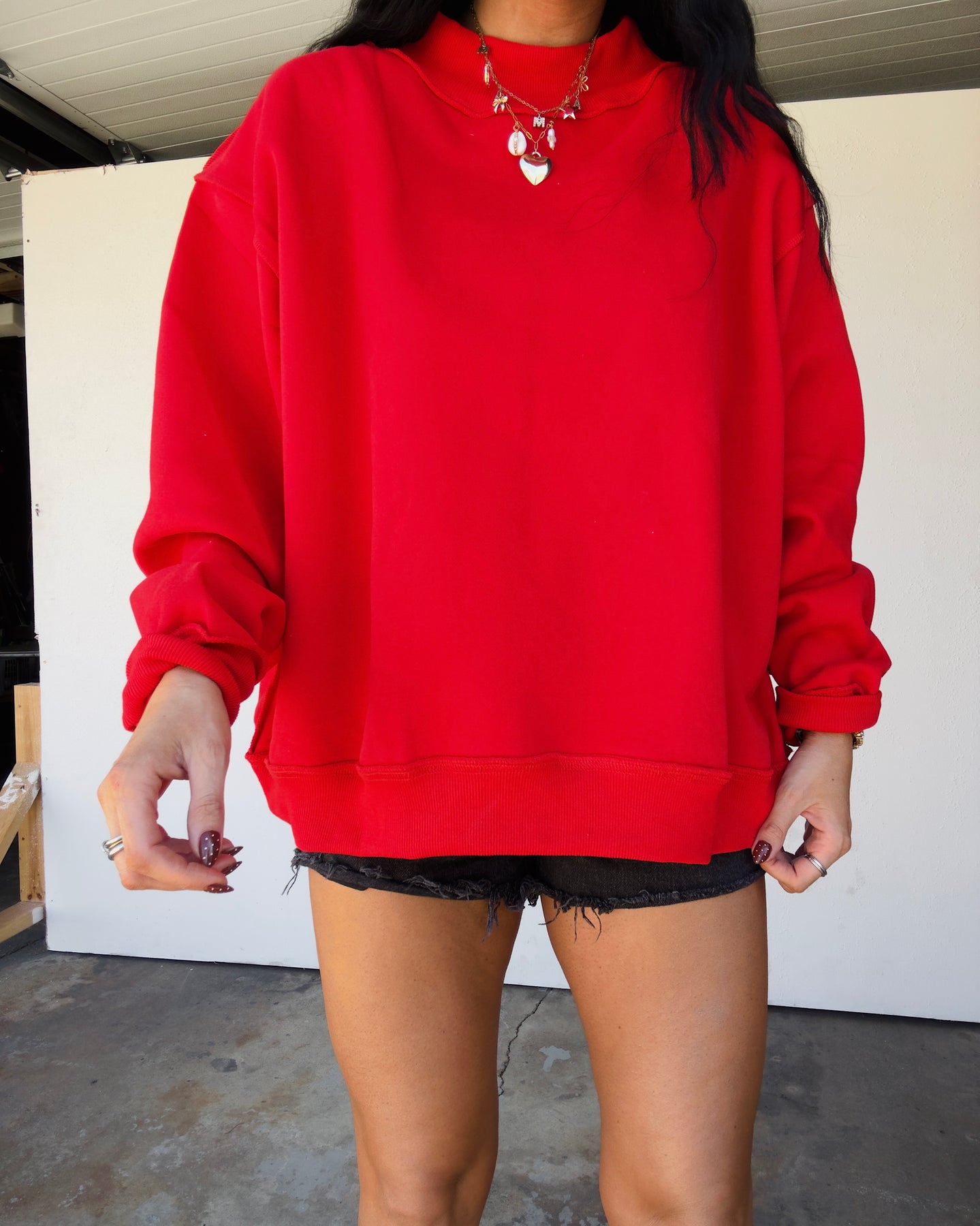 The Daily Mock Neck Sweatshirt - Red