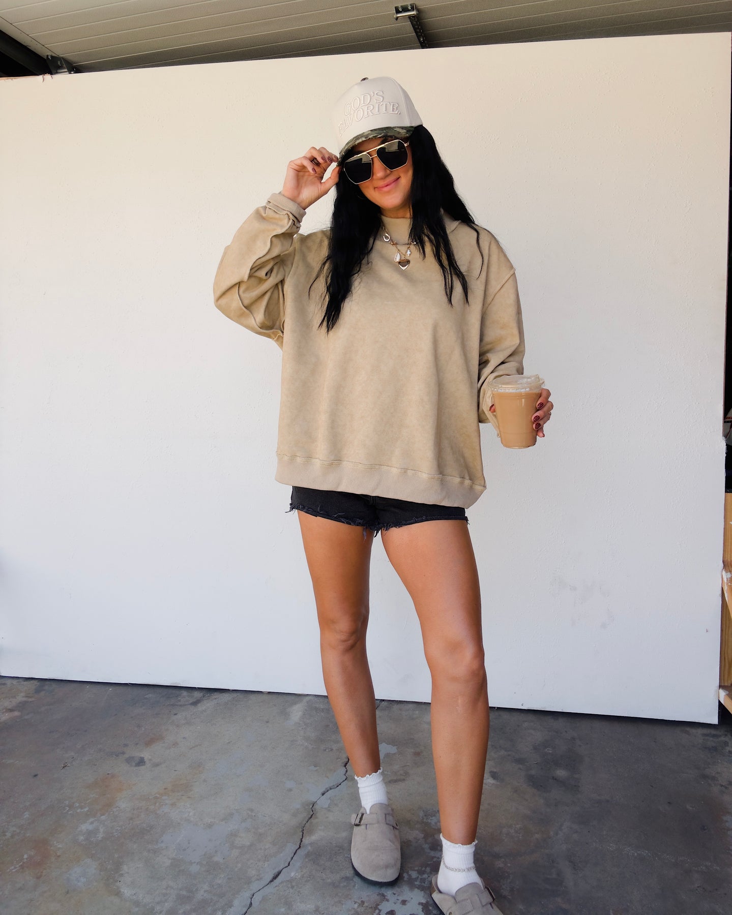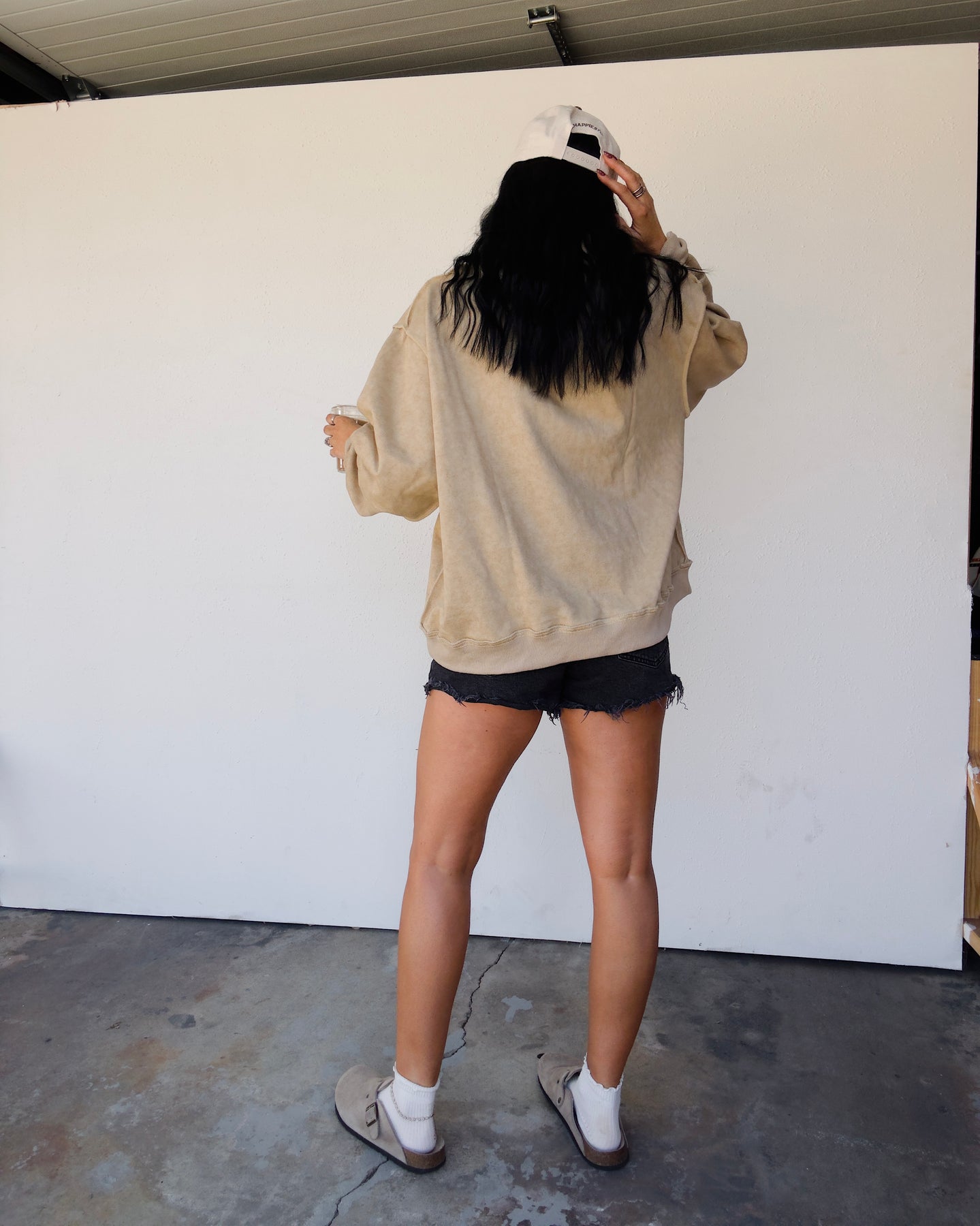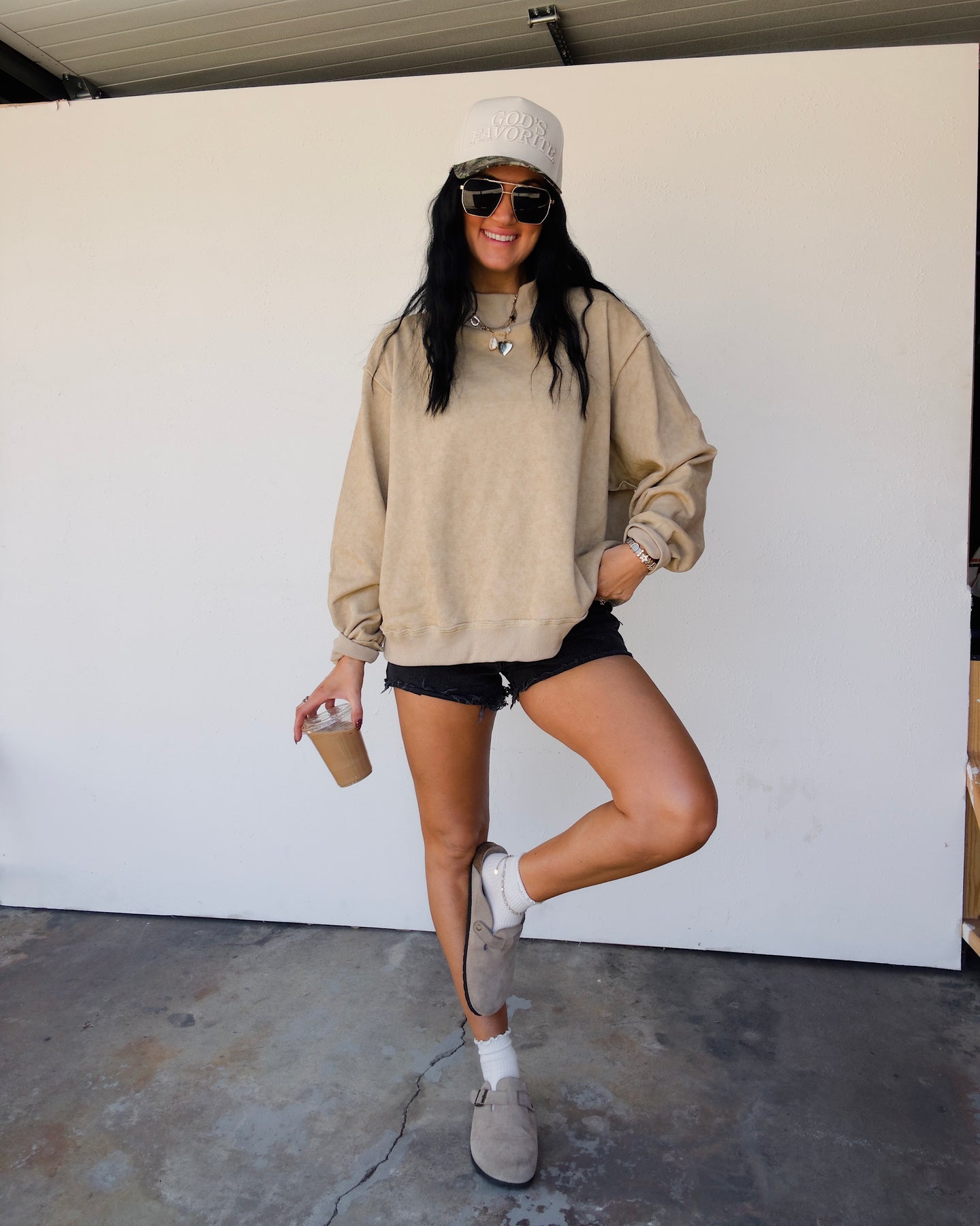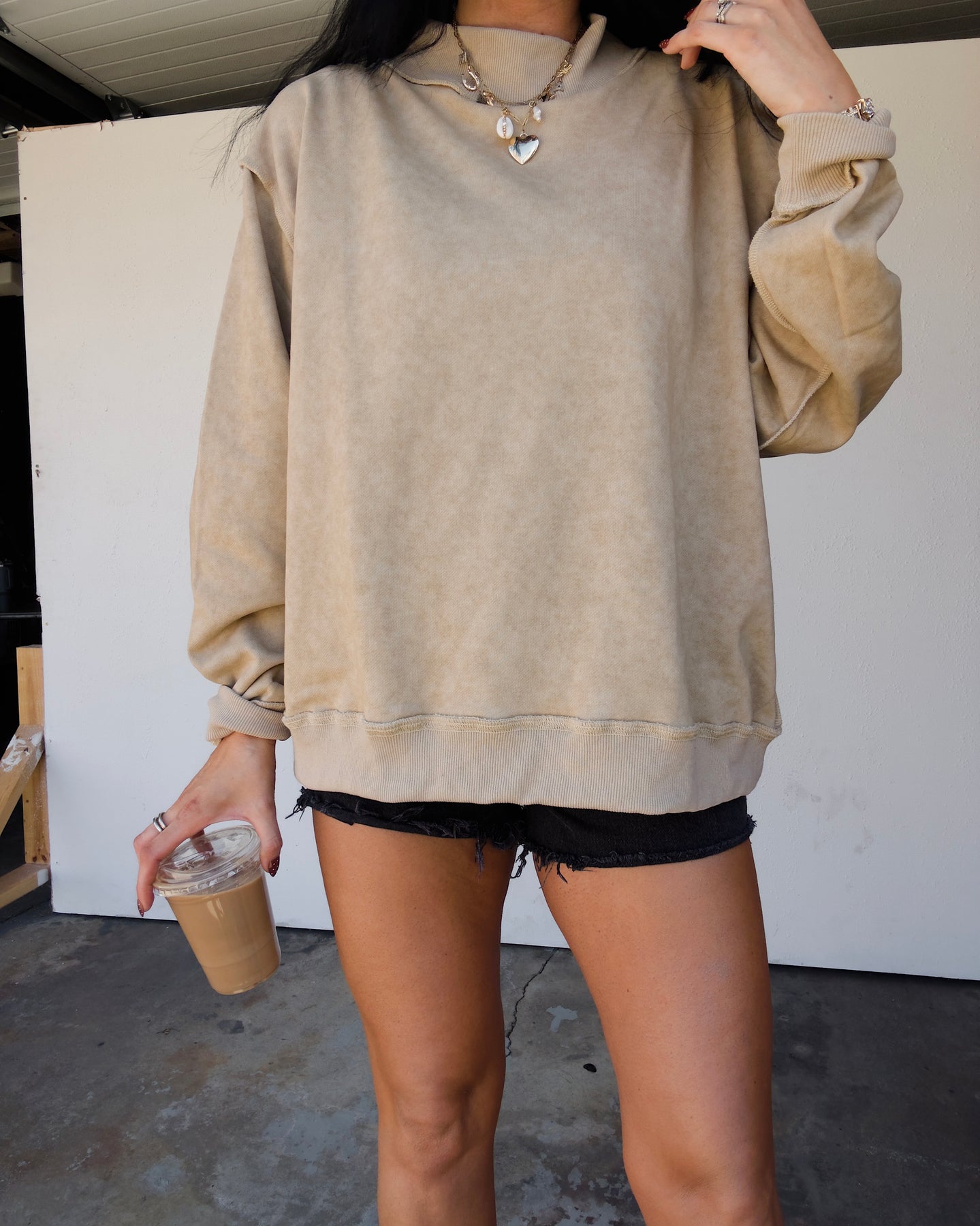 The Vintage Wash Mock Neck Sweatshirt - Taupe