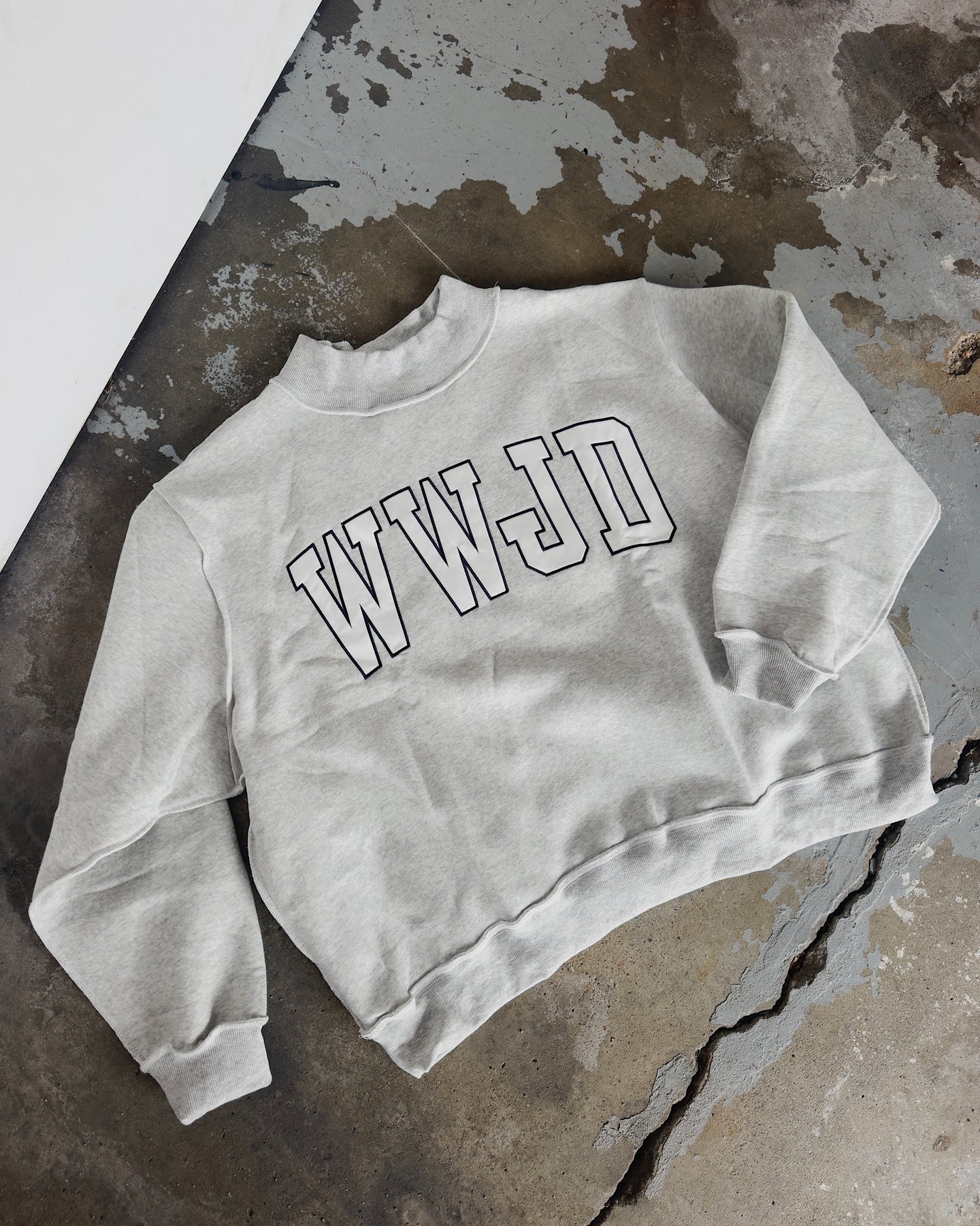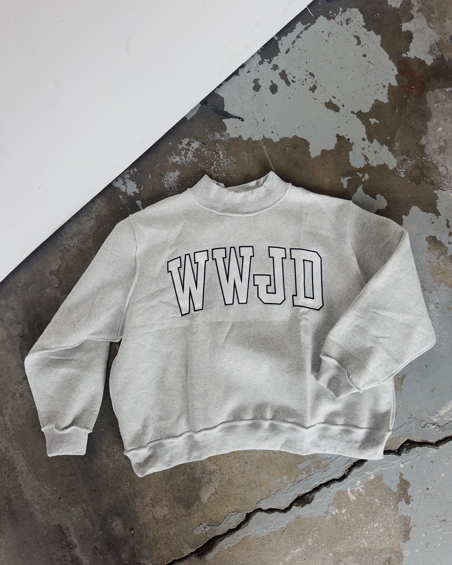 WWJD Mock Neck Sweatshirt - Ash/Navy